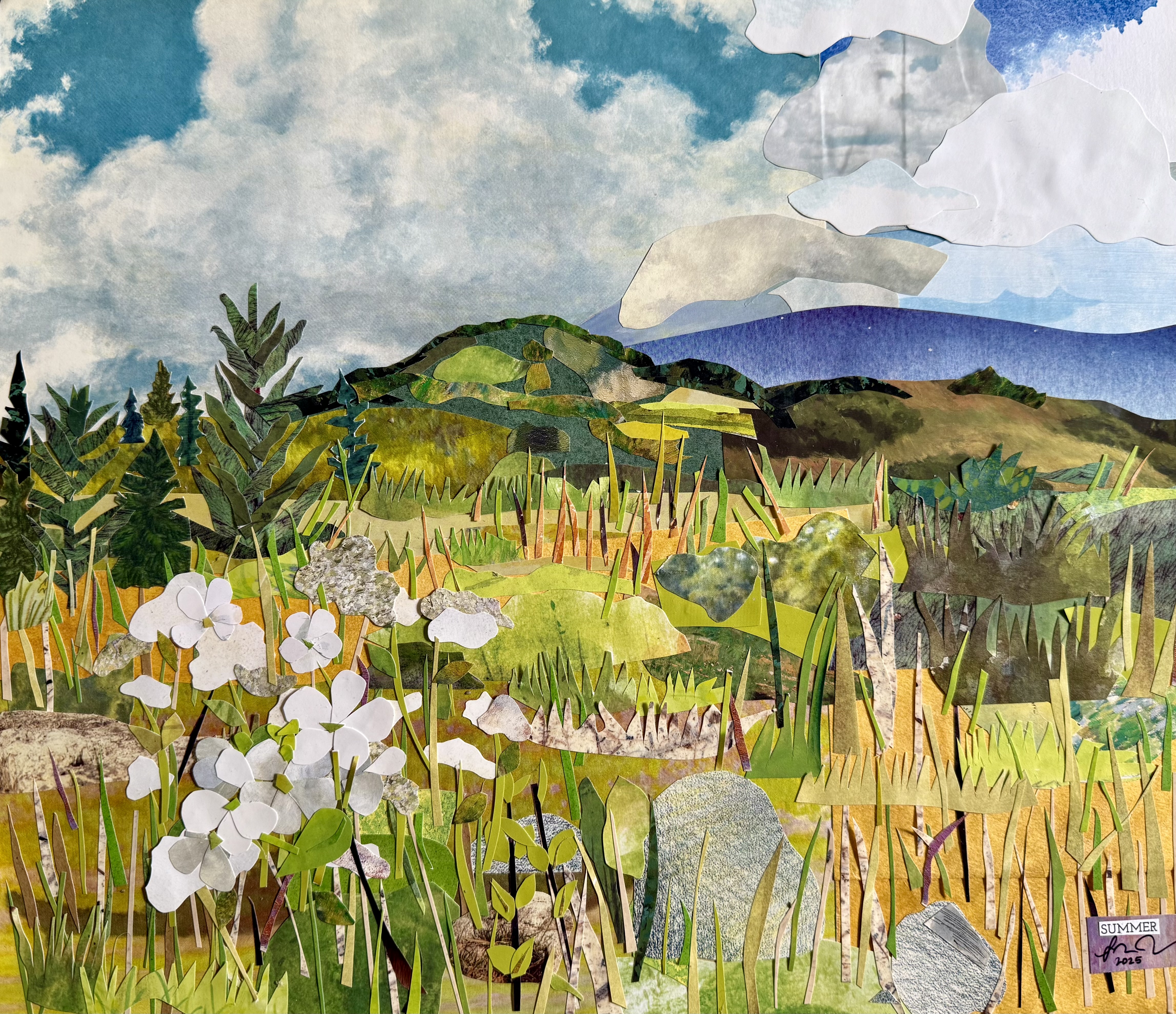 Explore Summer’s collection of original paper collages, each crafted with recycled materials that showcase landscapes, flora, fauna, and abstract natural forms. Her work emphasizes beauty, sustainability, and the potential for art to foster environmental stewardship.